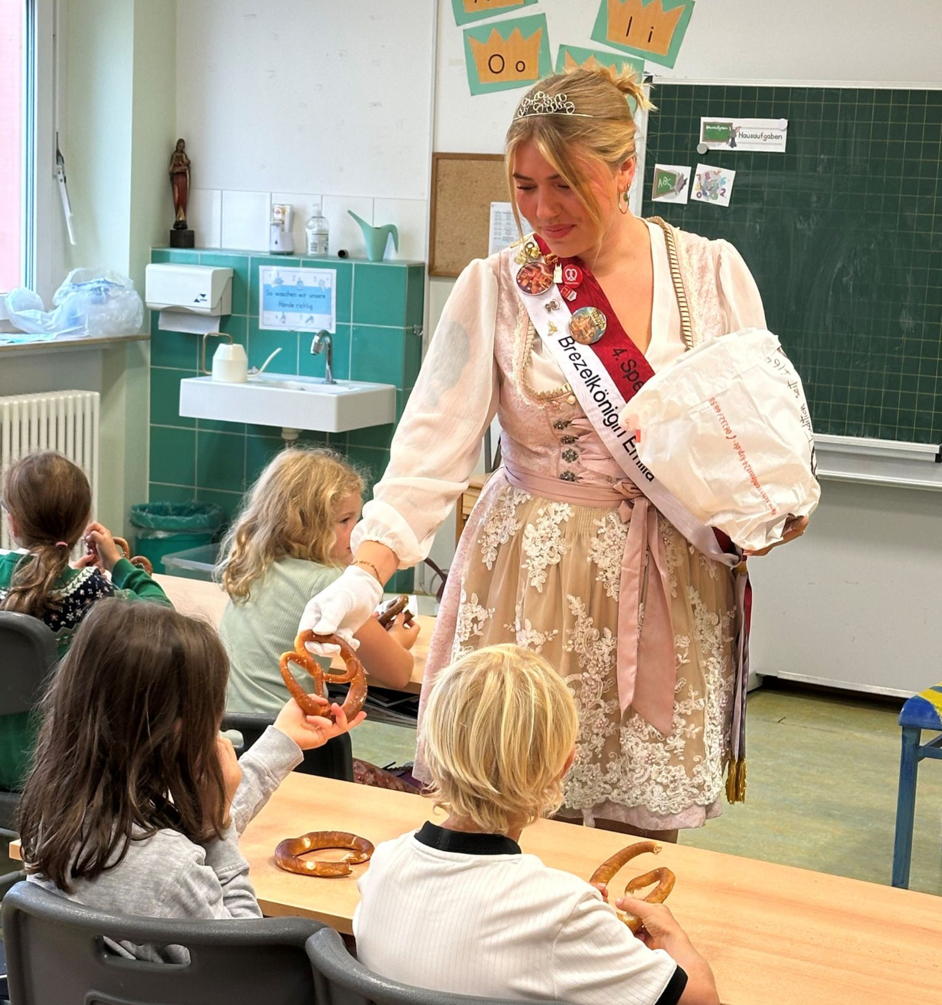 Heute hatten wir in der Klasse 2a ganz besonderen Besuch: Die 4. Brezelkönigin Emilia I. kam zu uns an die Klosterschule!