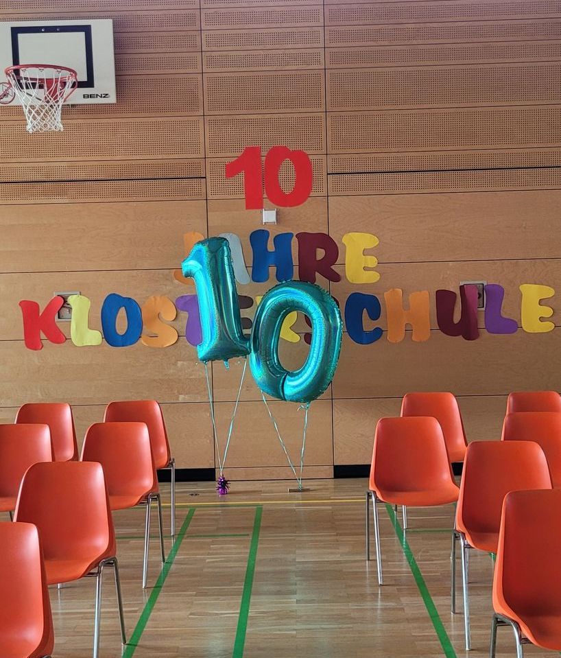Gleichzeitig feierten wir auch das zehnjährige Bestehen der Klosterschule, die im Schuljahr 2013/2014 startete. Auch einige Schülerinnen und Schüler aus der "ersten 1. Klasse" waren da - das zeigt, wie unser Team Klosterschule zusammenhält!