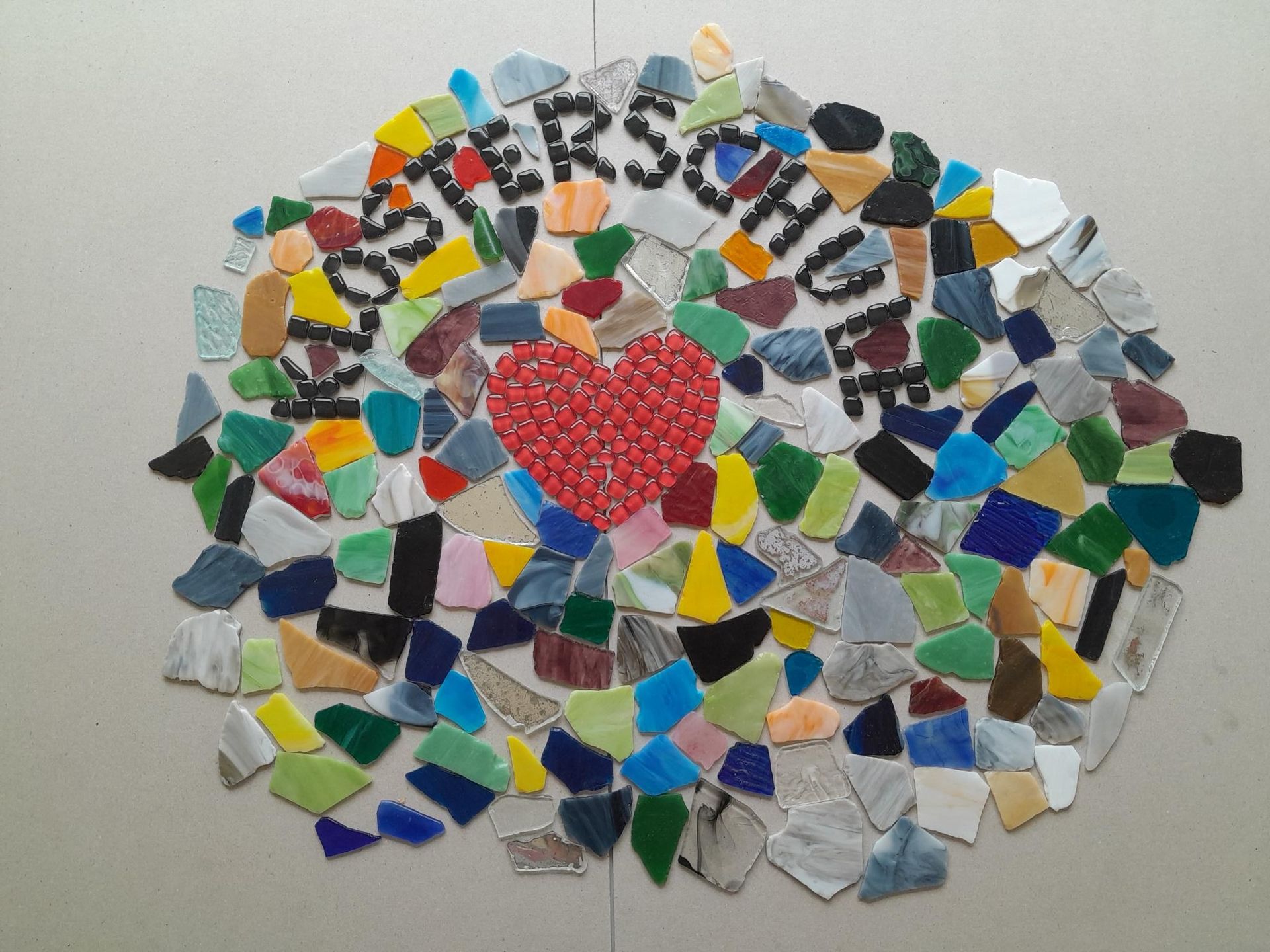 Das gemeinsam entstandene Mosaik werden wir in der nächsten Woche noch beenden und dann an einem geeigneten Platz im Schulhaus aufhängen.