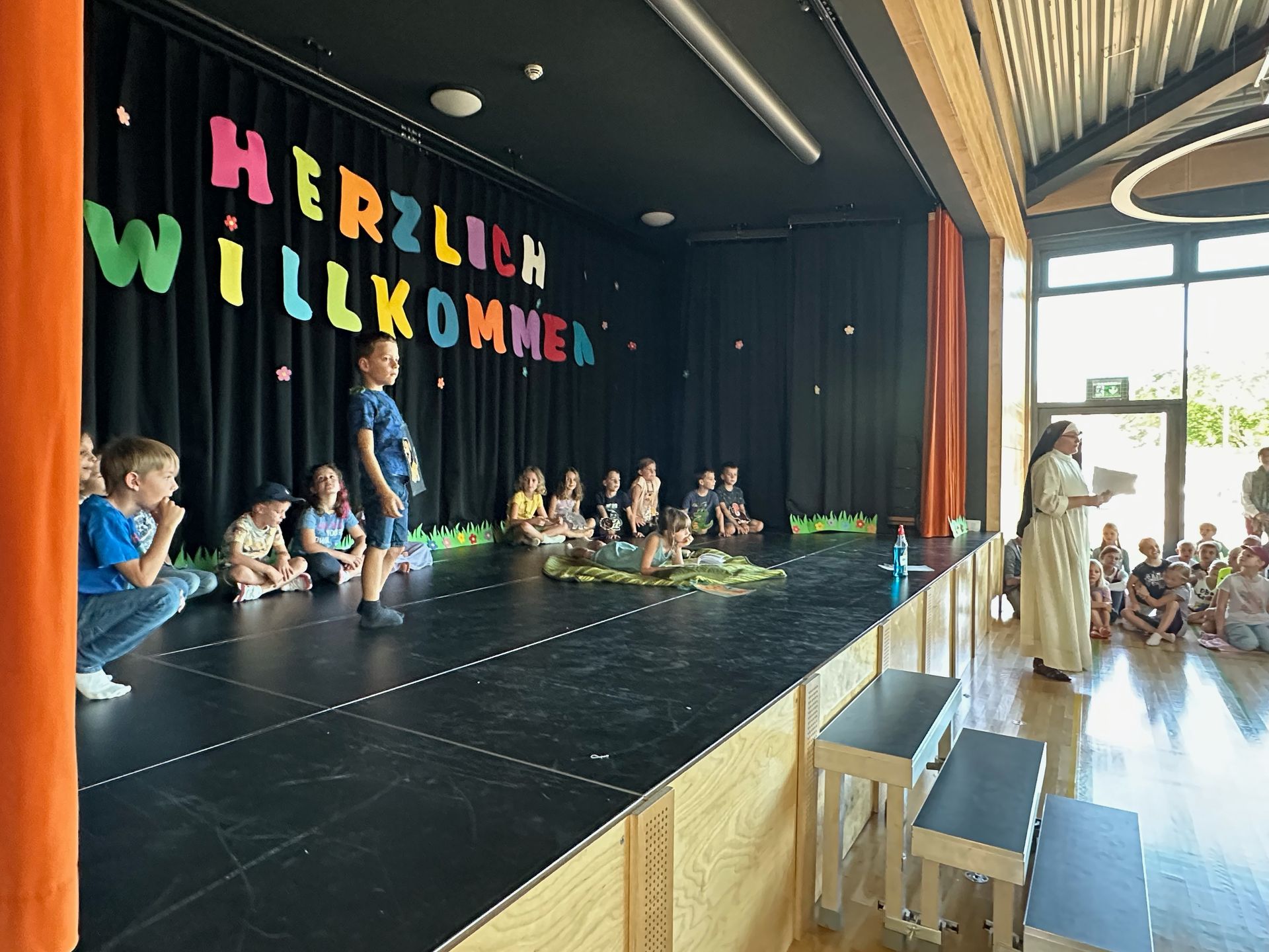 Am vergangenen Dienstag startete der erste gemeinsame Tag mit einem gemeinsamen Gottesdienst, bei der die neuen Schulkinder mit ihren Schultüten mit Schwester Karola und Frau Heumüller durch den Dom einzogen und direkt in den ersten Bänken Platz nahmen.