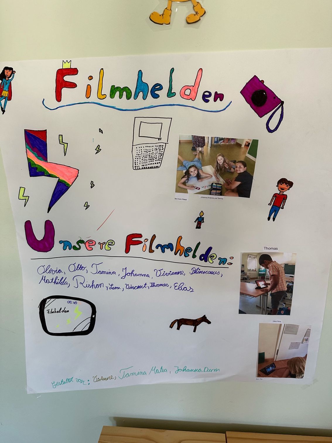 Unsere Projektgruppe Filmhelden begann die Projektwoche mit einer Einführung in Stop Motion Filme. Wir lernten die App „Stop Motion Studio“ auf dem IPad kennen und erfuhren, wie wir durch viele Fotos einen eigenen Film drehen können.
