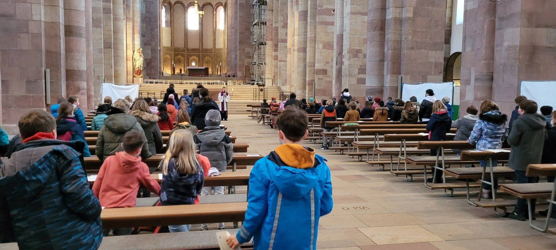 Heute ein kleiner Einblick in unseren Wochenstart, wie immer mit einem Gottesdienst. Seit den Abstandsregeln treffen wir uns nicht mehr in unserer Klosterkirche, sondern im großen Dom, der ausreichend Platz für uns alle bietet. Im Wechsel feiern wir mit Schwester Karola oder mit Kaplan Brandt und beginnen so die Woche als große Schulgemeinschaft.