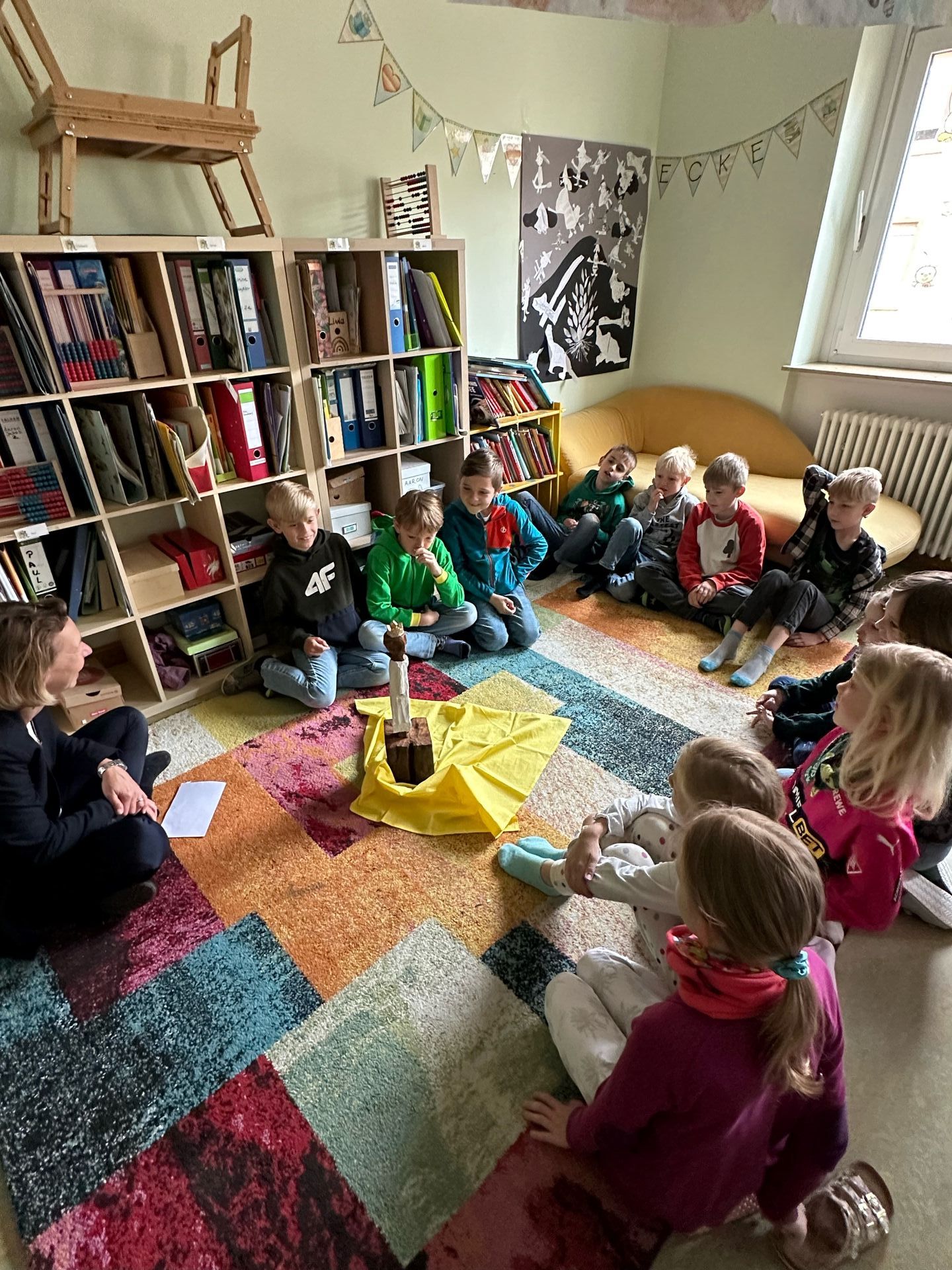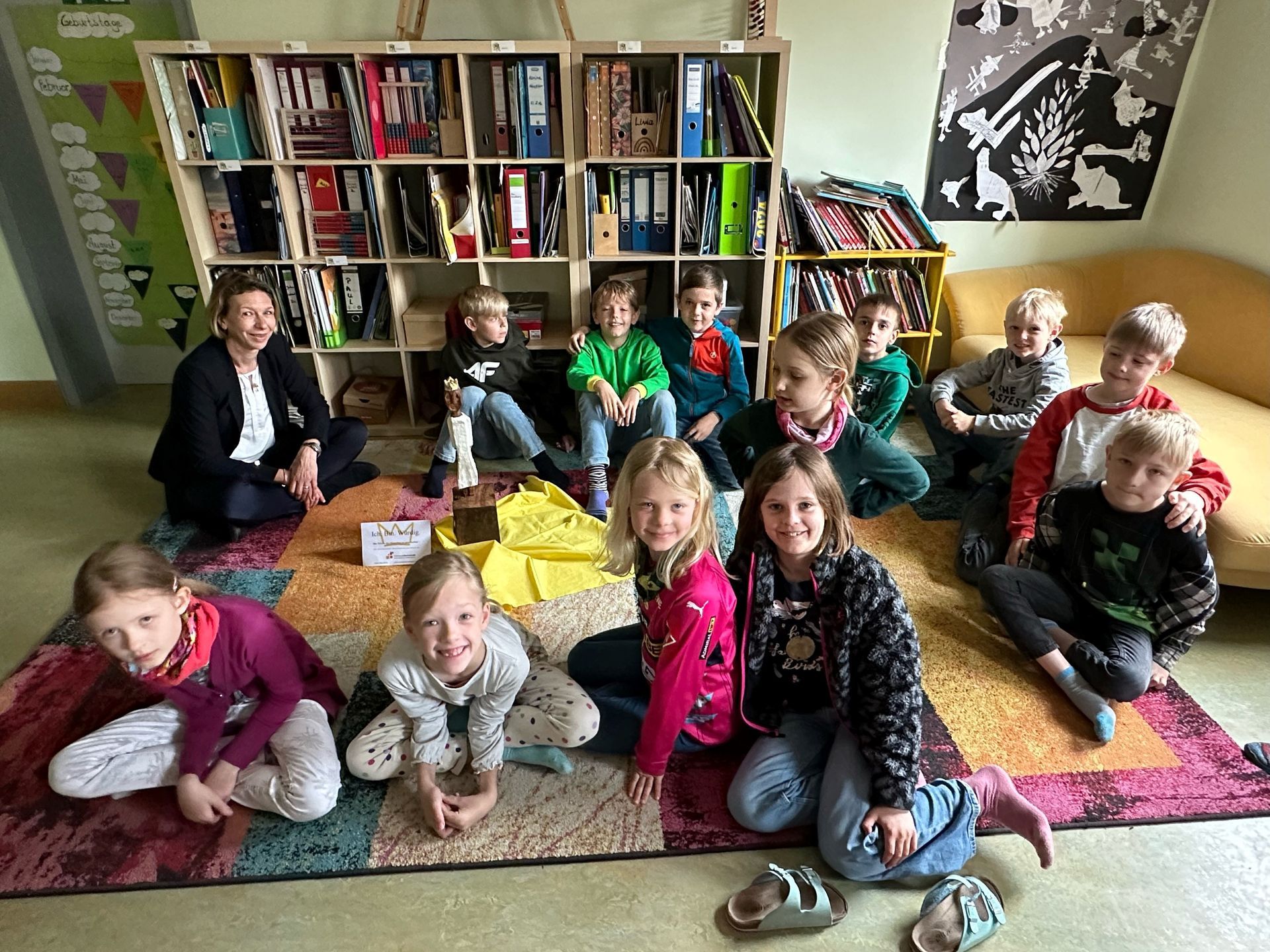 Am vergangenen Freitag besuchte Frau Dr. Kreusch von der Hauptabteilung II: Schulen, Hochschulen, Bildung des Bistums Speyer die Klasse 2a mit einer Königinnen Skulptur von Ralf Knoblauch