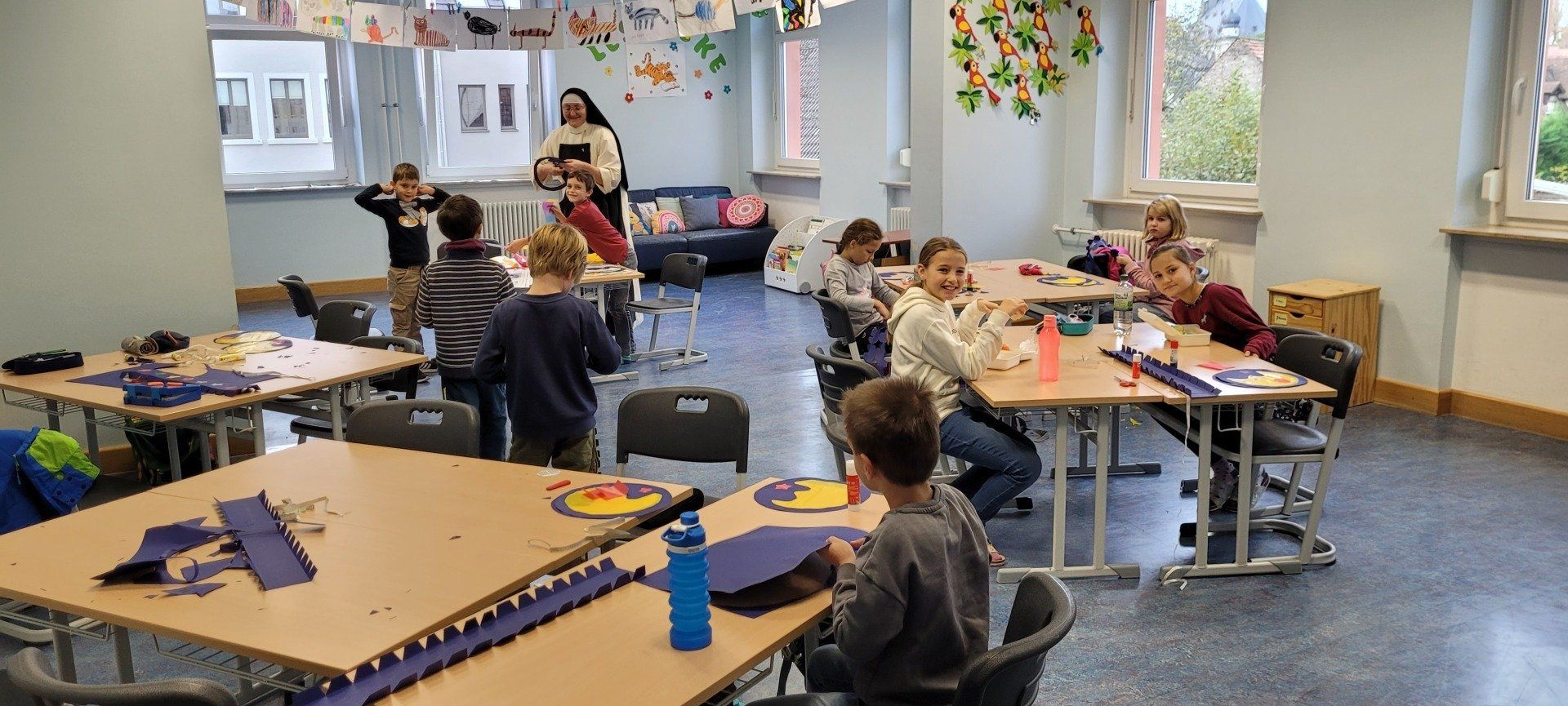 Die große Laternenbastelaktion am 7.11. läutete den großen Tag ein. Schon seit Wochen übten die Kinder im Schulchor fleißig Martinslieder und vergangenen Donnerstag, am Vorabend des Festtages, war es dann endlich soweit: Die Kinder der Klosterschule, ihre Eltern und Lehrerinnen und Lehrer trafen sich im Dom. Hier wurde innerhalb des Wortgottesdienstes an die Taten des Heiligen Martin gedacht, besonders natürlich an seine Mantelteilung. Die Klasse 1b führte in diesem Jahr das Stück auf und erhielt berechtigten Applaus.