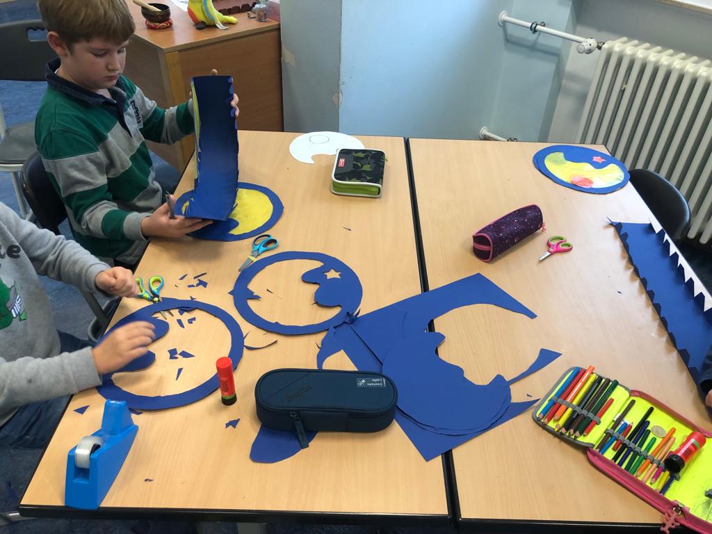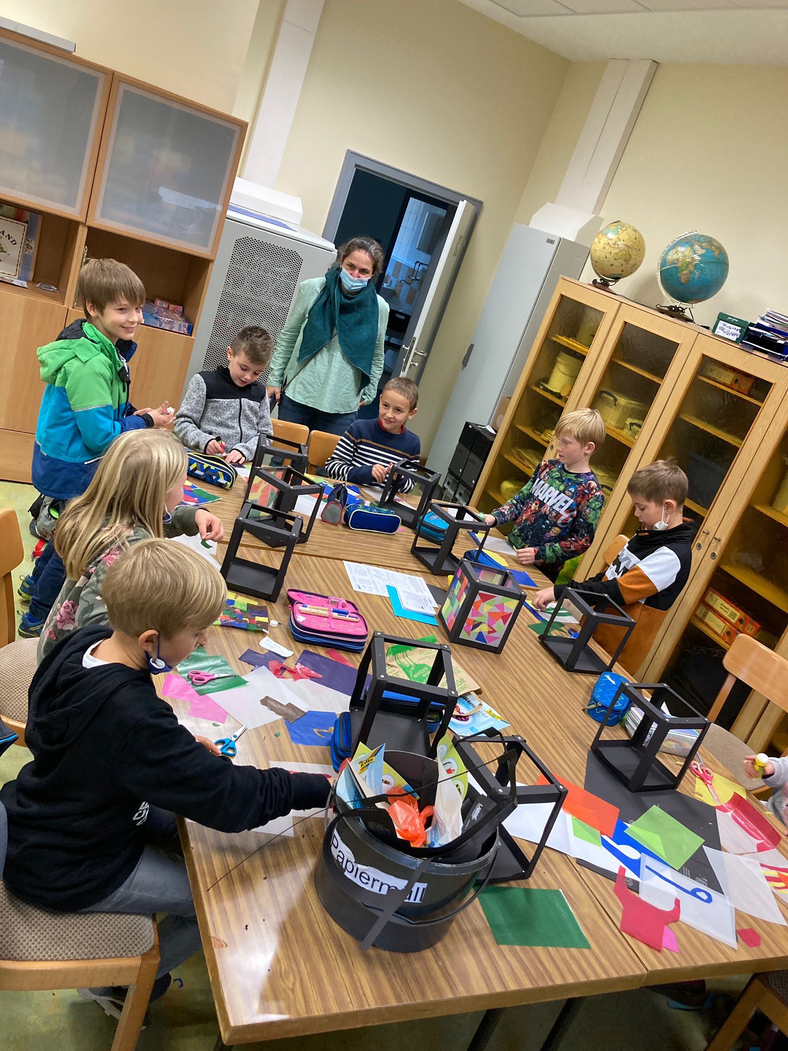 Am 11.11.21 denken wir an die guten Taten des heiligen Martin. Um das Fest endlich wieder gebührend zu feiern, wurden am Montag Laternen gebastelt. Zwölf Lehrerinnen und Lehrer hatten jeweils ein Modell vorbereitet, unter denen die Kinder wählen durften. Am Mittwoch werden sie in unserem Laternenzug vom Dom zur Schule zum Einsatz kommen.