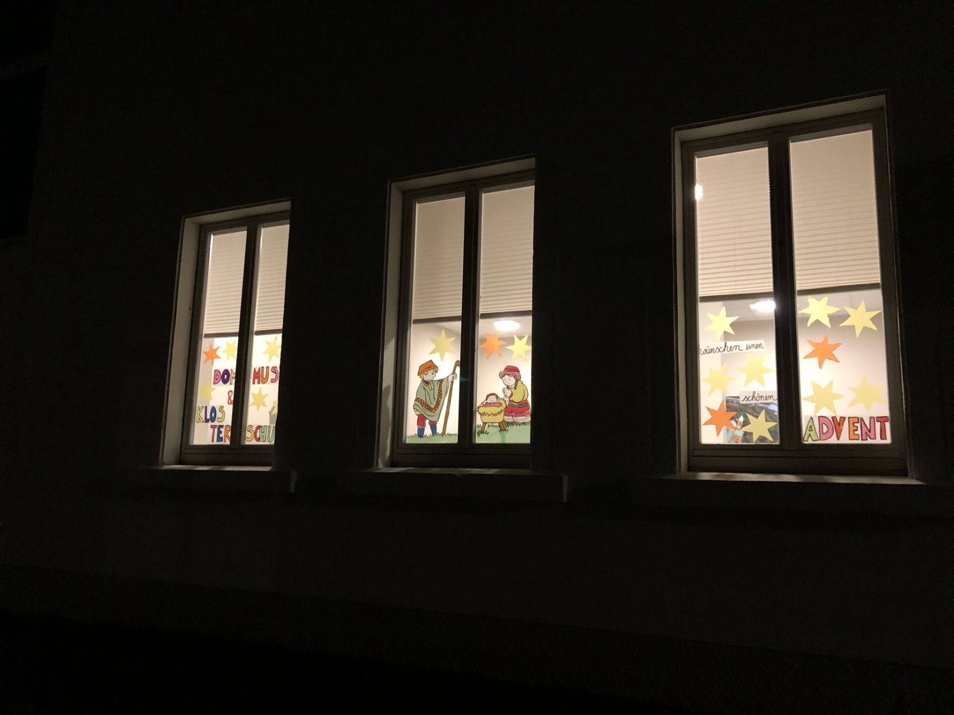 Im letzten Advent haben wir uns an der Adventsfenster-Aktion der Pfarrei Pax Christi beteiligt und auch ein Krippenmotiv beigesteuert. Verschiedene Klassen haben sich daran beteiligt und fleißig geschnippelt und geklebt.