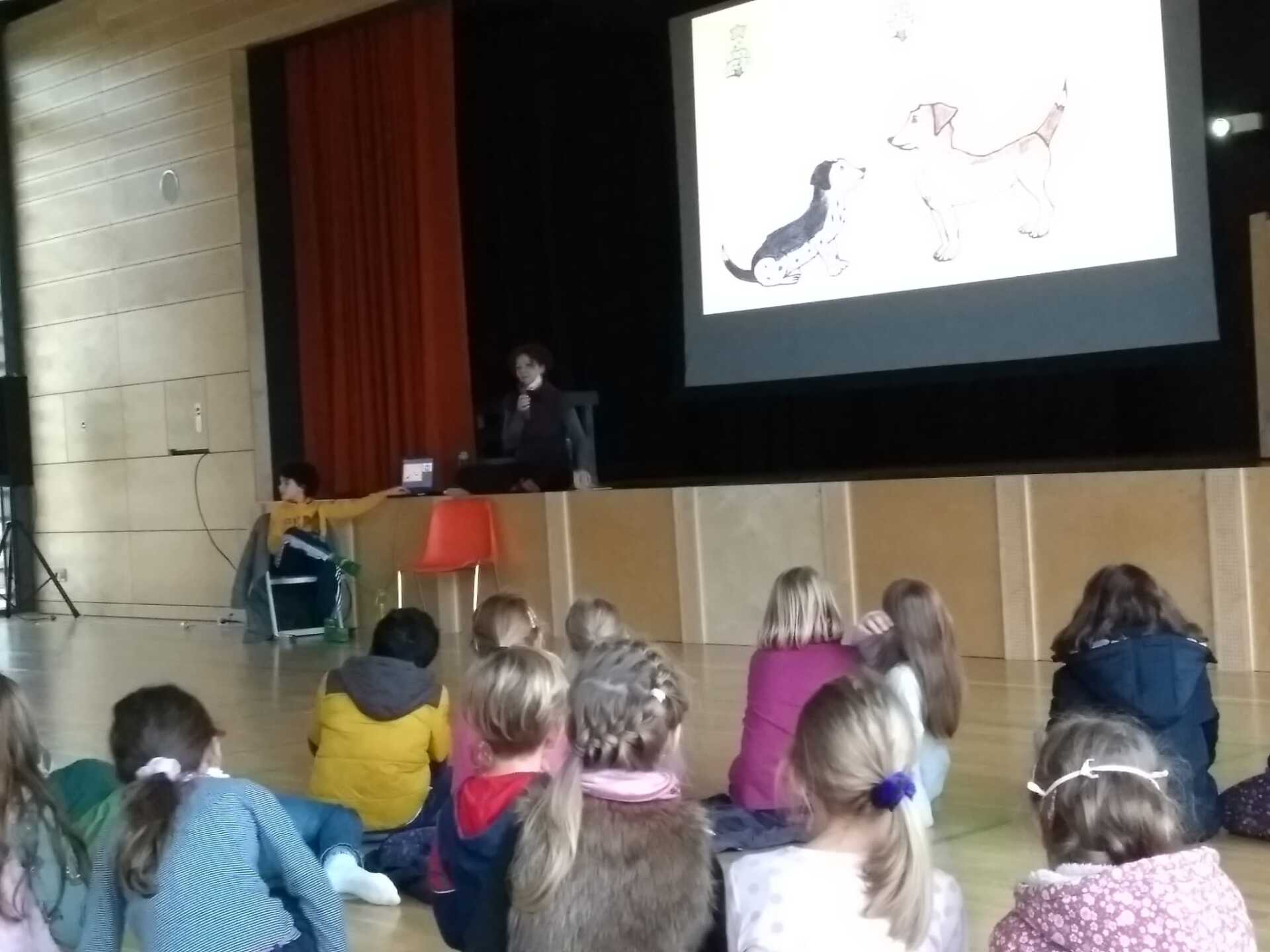 Mit dabei waren Frau Birgit Heid aus Landau, Märchenbuchautorin und begeisterte Erzählerin, die sich zusammen mit den Kindern aus Klasse 1 und 2 Geschichten ausdachte und Frau Hook aus der Buchhandlung Osiander, die den Kindern aus Klasse 3 und 4 die neusten Erscheinungen und ihre Lieblingskinderbücher mitgebracht hatte. Außerdem stellte uns Frau Jester Casara Inacio ihr Buch "Baluna, die Reise beginnt" vor, das erst kurz zuvor erschienen war.