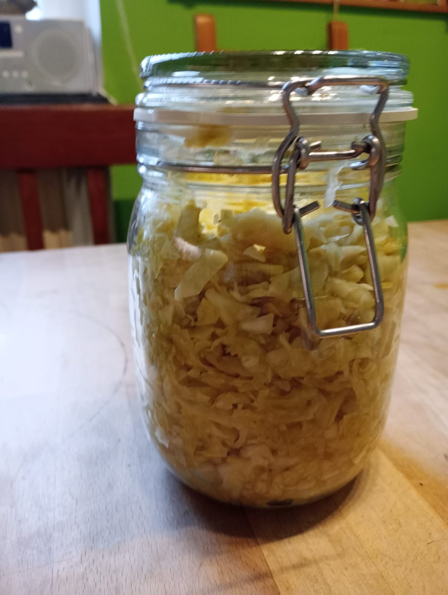 Nun ist es endlich soweit - das erste Sauerkraut der Klosterschule ist fertig! Die Menge ist zwar überschaubar, aber es reicht auf jeden Fall für einen Geschmackstest :) Wir sind gespannt!