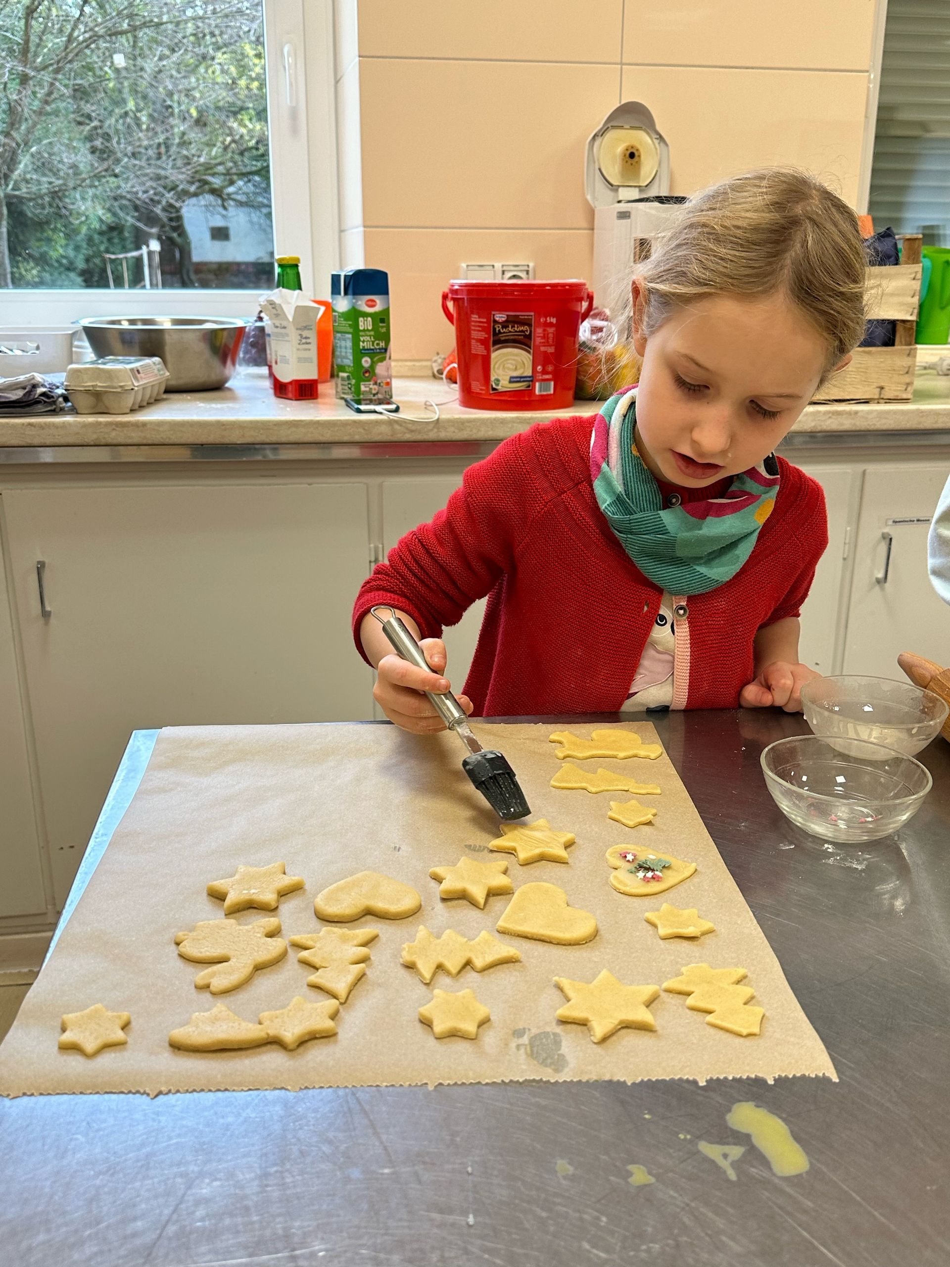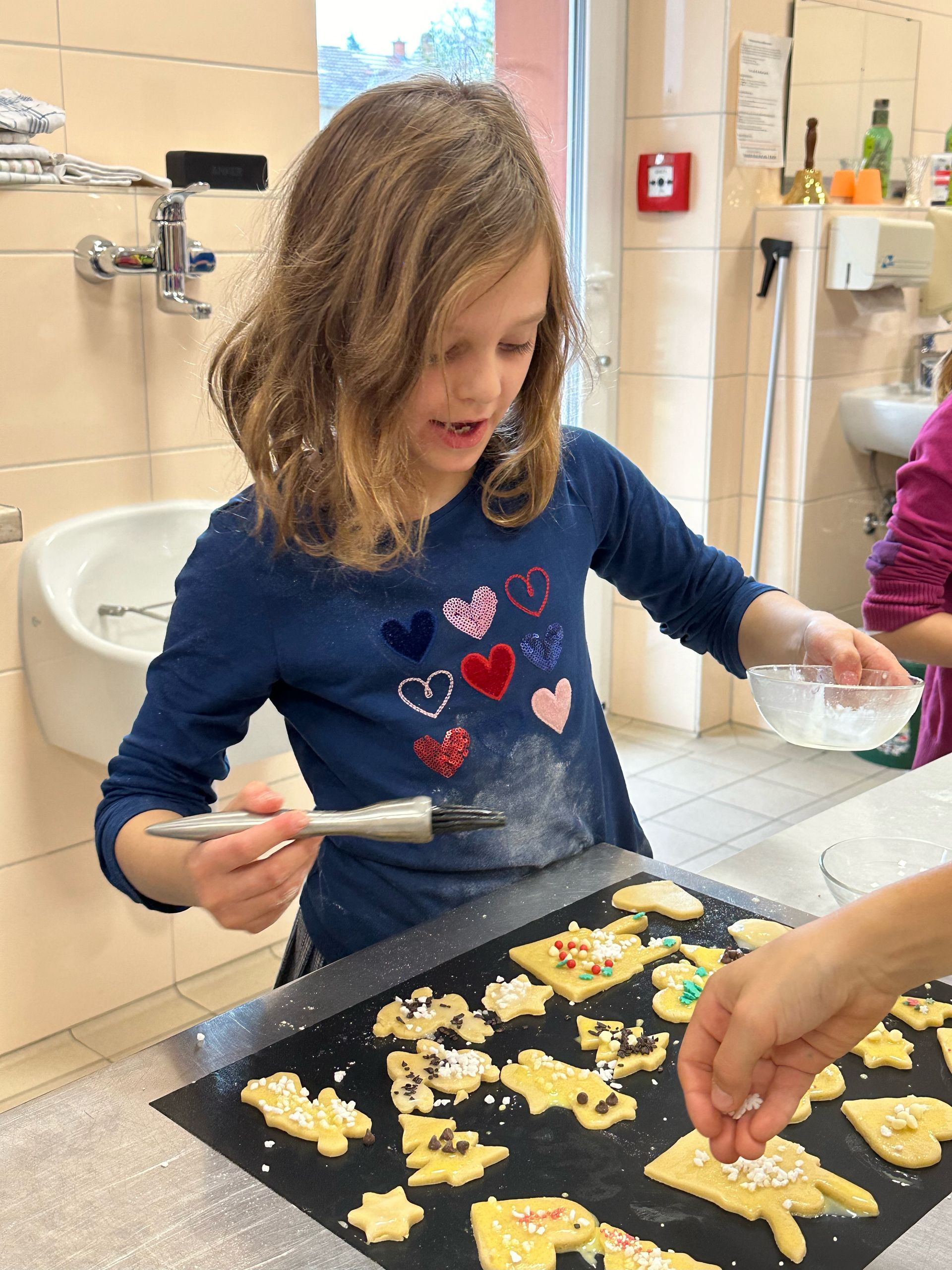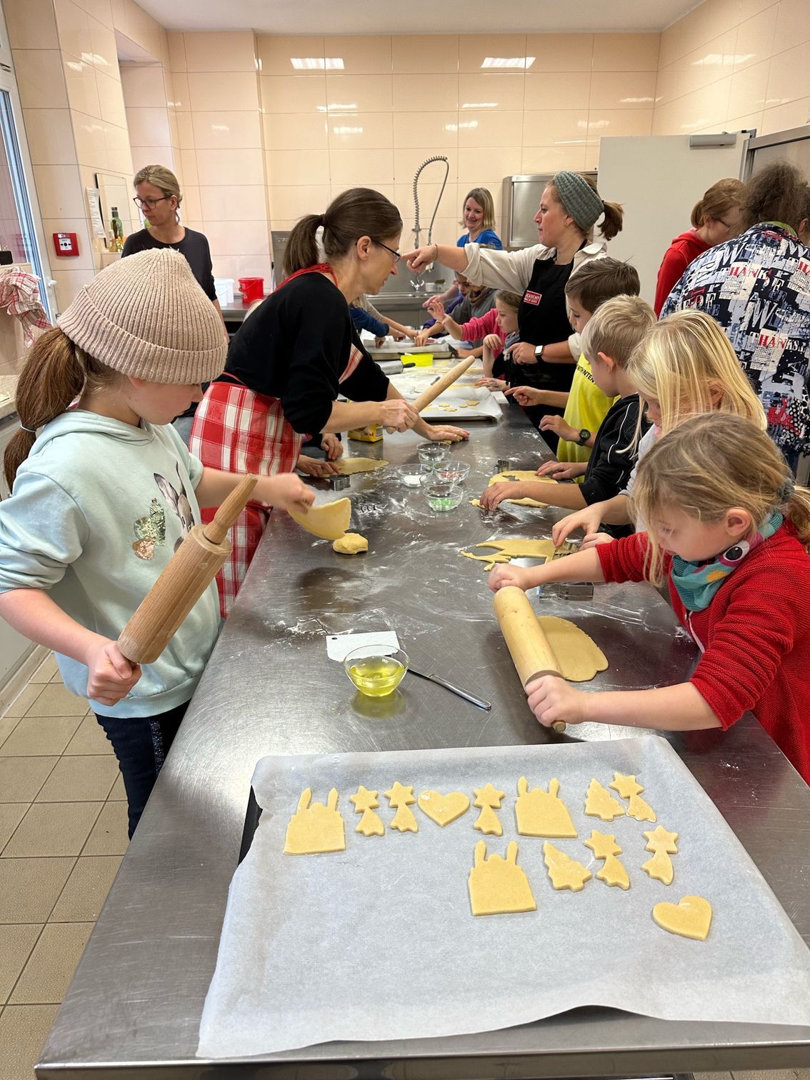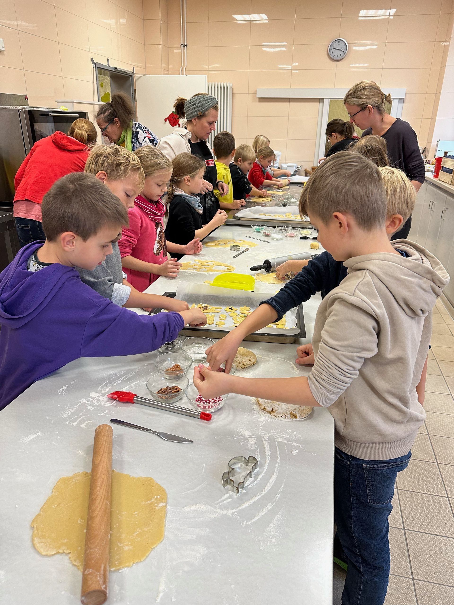 Vergangene Woche tauschte die Klasse 2a das Klassenzimmer mit der Weihnachtsbäckerei um Plätzchen für ihren adventlichen Bastelnachmittag zu backen. Fleißige Helfer unterstützten uns in der Küche und wir hatten einen unvergesslichen Vormittag. Der Duft der frischen Plätzchen erfüllte das ganze Schulhaus und immer wieder kam Besuch vorbei, um auch etwas zu probieren. Natürlich durfte auch bei den fleißigen Bäckerinnen und Bäckern das Naschen nicht fehlen. Zwischendurch gab es musikalische Pausen am Klavier und gemeinschaftliche Spiele. Am Ende des Vormittags halfen wir gemeinsam beim Spülen und gingen alle mit einer kleinen Tüte voll Plätzchen als Überraschung für unsere Eltern nach Hause. Wir freuen uns schon auf unseren Bastelnachmittag, bei dem wir die restlichen Plätzchen knabbern können.