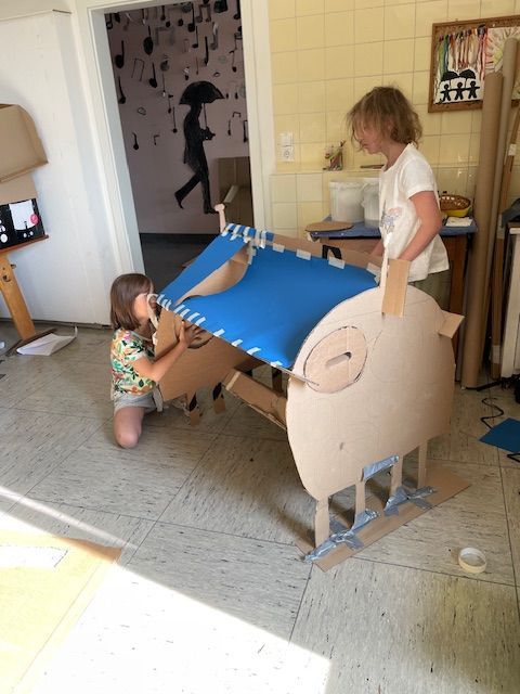 Zusammen schauten die Kinder Videos, welche naturwissenschaftliche Erkenntnisse über das All und die Geschichte der Raumfahrt beleuchteten und eine eine gute Inspirationsgrundlage boten.