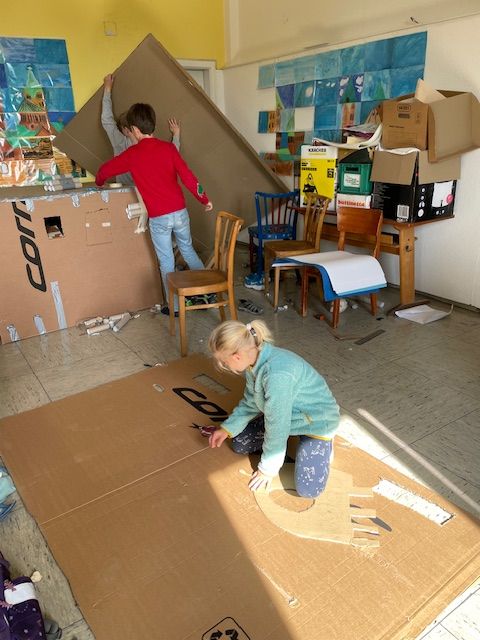 Mit Hingabe und großem Engagement haben sich die Kinder der Klassenstufe 1-4 dem Bau von drei Raumschiffen und einem Cockpit gewidmet. Dazu bildeten die Kinder zu Beginn des Projektes vier Gruppen, was ihnen die Möglichkeit gab, wertvolle Erfahrungen im Bereich Teamarbeit und Teamfähigkeit zu sammeln.