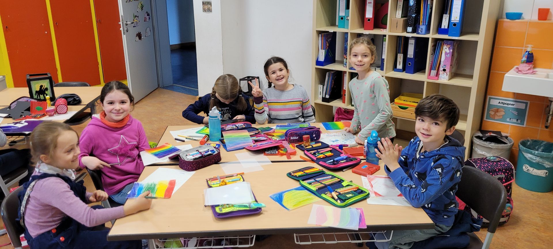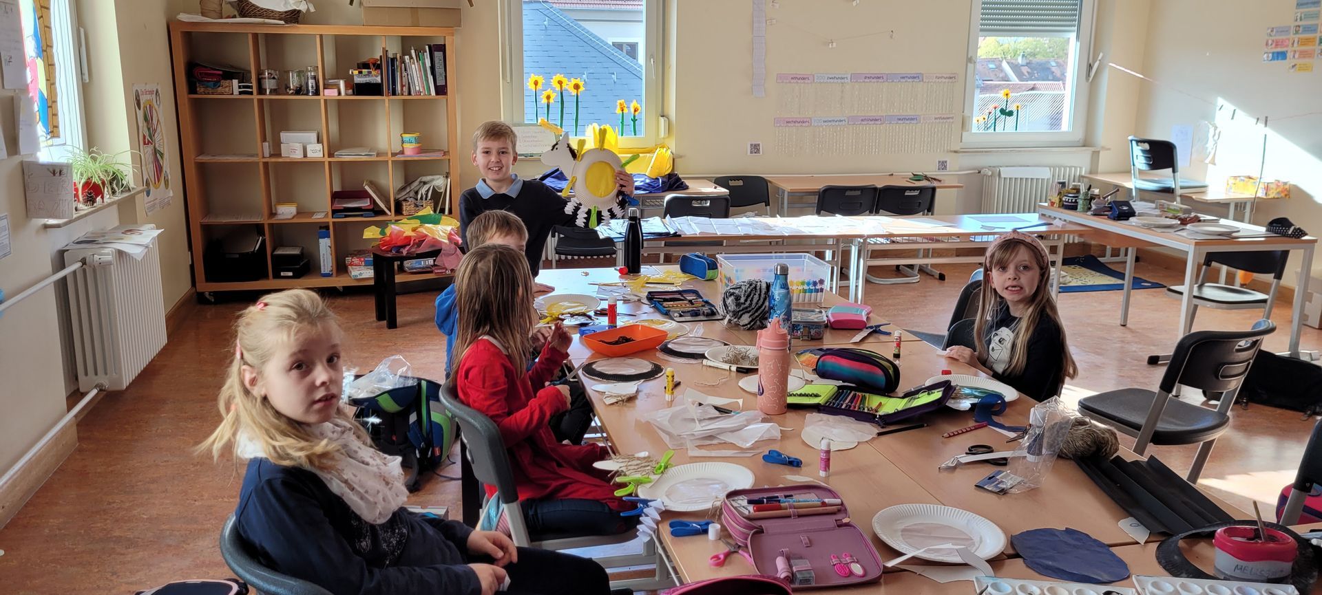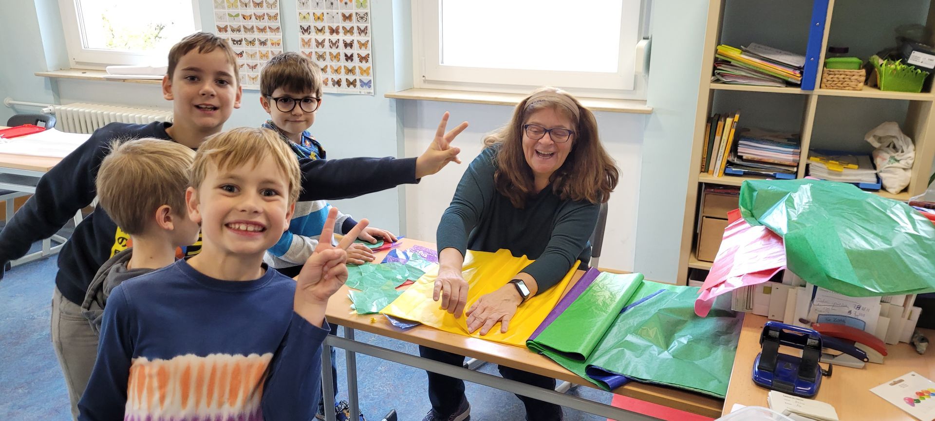„Wer bin ich und wer möchte ich einmal sein?“ Unter diesem Motto starteten die Kinder mit Frau Montag und Frau Folz in die Projektgruppe. Jeden Tag gab es neue Impulse zu den Themen „wer bin ich“, „was ist mir wichtig“, „wie möchte ich einmal werden“ und „meine Stärken stärken und meine Schwächen schwächen“. Wir verbrachten täglich eine Stunde mit Reflexionsübungen, Stop-Theater, Schwungtuchspielen oder auch 1,2 oder 3 auf dem Hof, schauten Infofilme, begrüßten Überraschungsgäste und gestalteten täglich eine neue Wolke für unser Plakat, das viele Zuschauer beim Schulfest begeistern konnte. Die Reise zu uns selbst ist nicht immer ganz einfach und wurde von den Erst- bis Viertklässlern der Gruppe mutig und offen bestritten. Es war eine tolle Projektwoche!