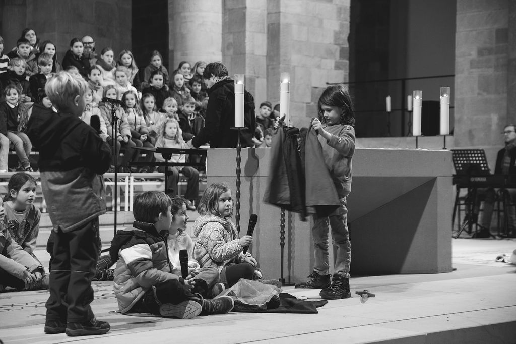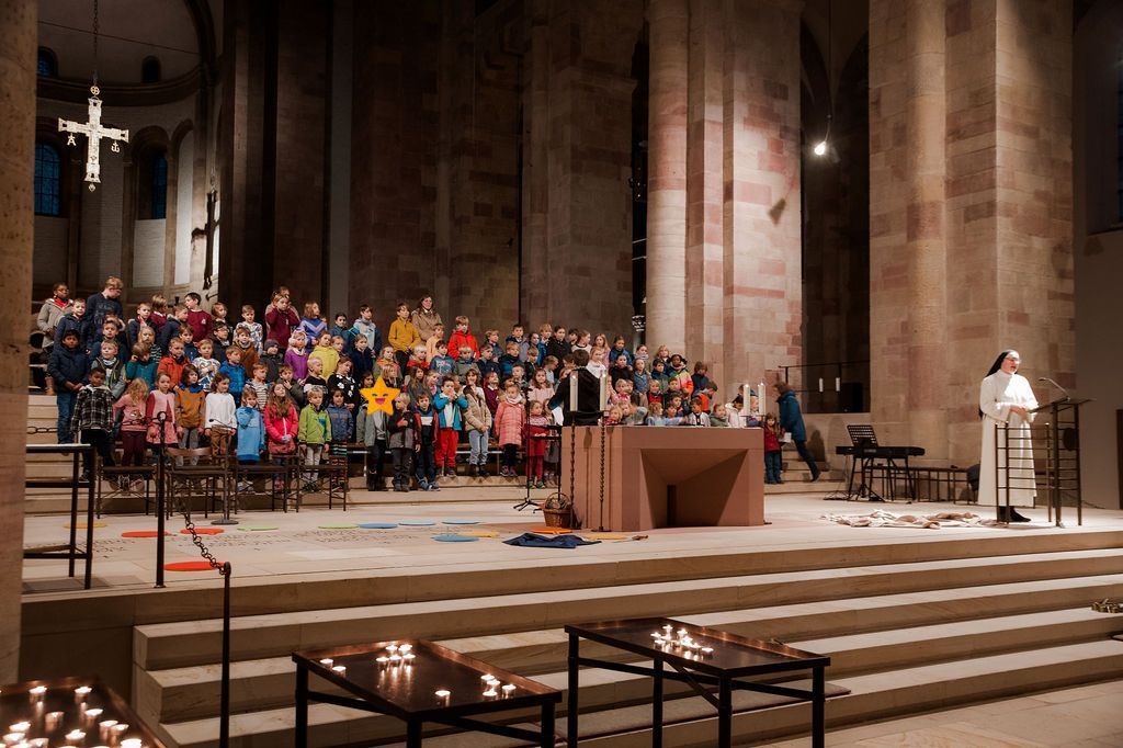 Am 11.11. feierten wir gemeinsam das Leben und die Taten des Heiligen Martin. Nachdem am Freitag zuvor fleißig Laternen gebastelt wurden, trafen sich die Kinder, die Lehrer und die Eltern im Dom. Die Klasse 1a zeigte mit ihrem Spiel, warum Martin noch immer bekannt ist und alle anderen Kinder begleiteten das Stück mit ihrem Gesang.